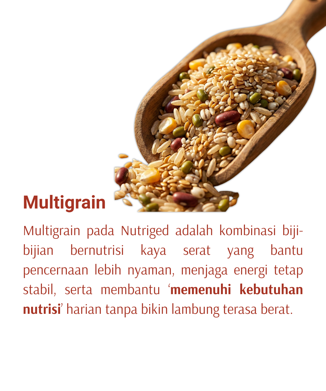 GERD bukan alasan untuk berhenti menikmati makanan. Nutriged menghadirkan multigrain nutrition yang lebih ramah untuk lambung sensitif, lembut, praktis, dan tetap bernutrisi.